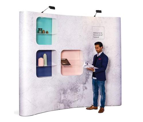 トラス状に折畳んだアルミフレームをワンタッチで開き、パネルを張り込んでセッティング完了。女性一人でも設営できる軽量素材でありながら、強度も十分! コンパクト性、ポータブル性に優れており、1ユニットが1つのケースに収納。ケースはカウンターとして転用する事ができます。